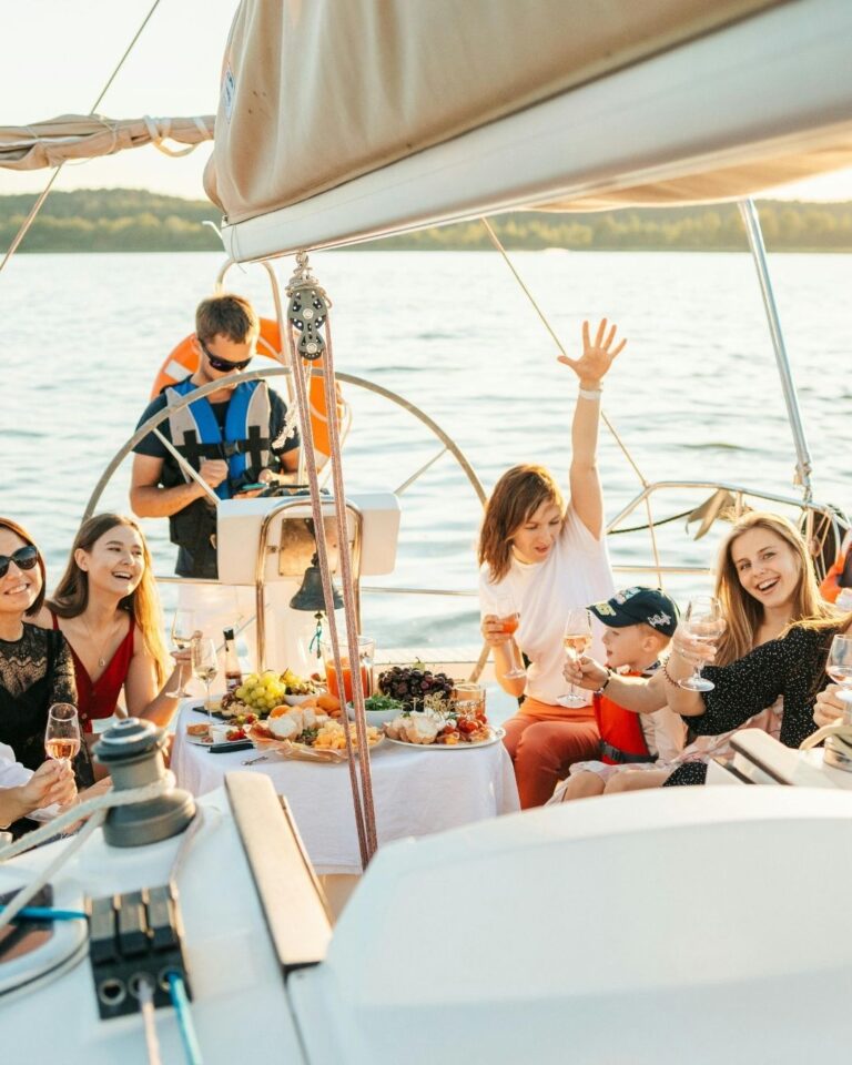 A bordo de un catamarán al atardecer